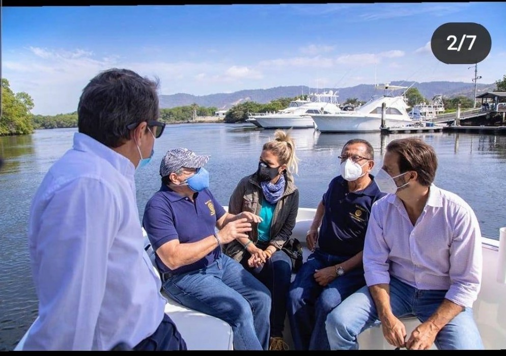 Visita a la Isla Las Cajas Comuna Puerto Libertad de la Sra. Susana González, Prefecta de la Provincia del Guayas, Juan Piana Gerente de la Empresa SEMGROUP; Eduardo Andrade, Gerente de la Empresa ROTOPLAS; Roberto Salas, Director del Proyecto de Agua; Tairo Franco, Presidente Propuesto. 19/08/2020.
